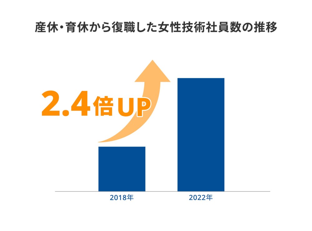 産休・育休から復職した女性技術社員は4年間で2.4倍!