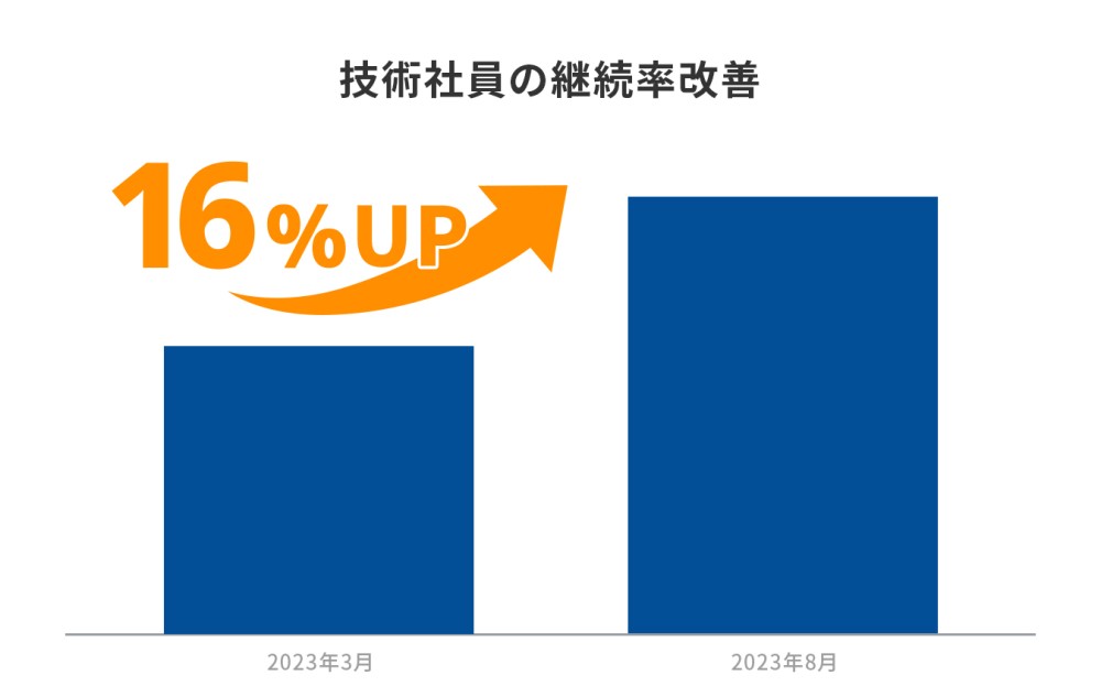 有期雇用技術社員の継続率は約半年間で16%改善