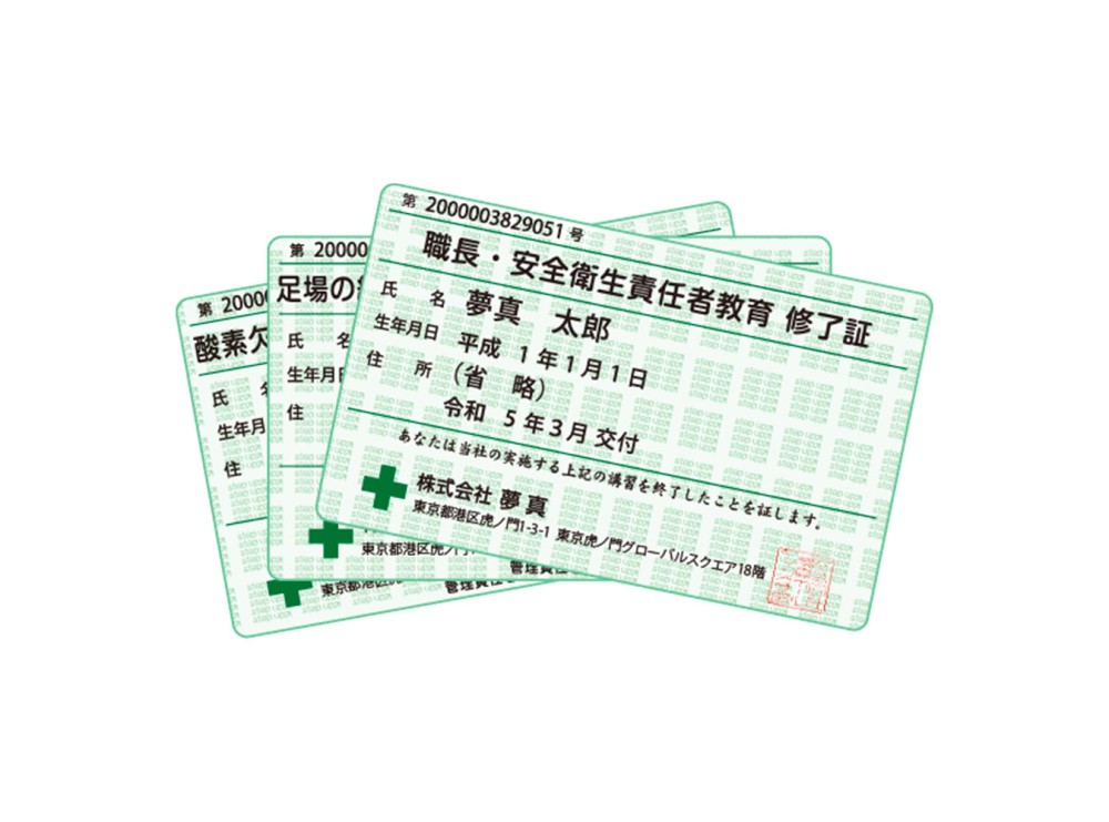 夢真は特別教育の修了書を発行しており、4つの特別教育の修了証発行数は8,000に達しました。関係法令の改正がない限り、特別教育修了の証明書として永続的に利用できて現場で対応できる業務が増えます。特別教育の資格を取得すればするほど、従事できる業務が増えてキャリアアップにつながります。