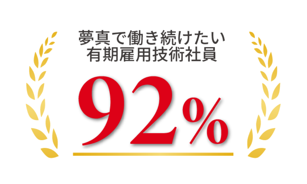 92%の有期雇用技術社員が夢真で働き続けたいと回答