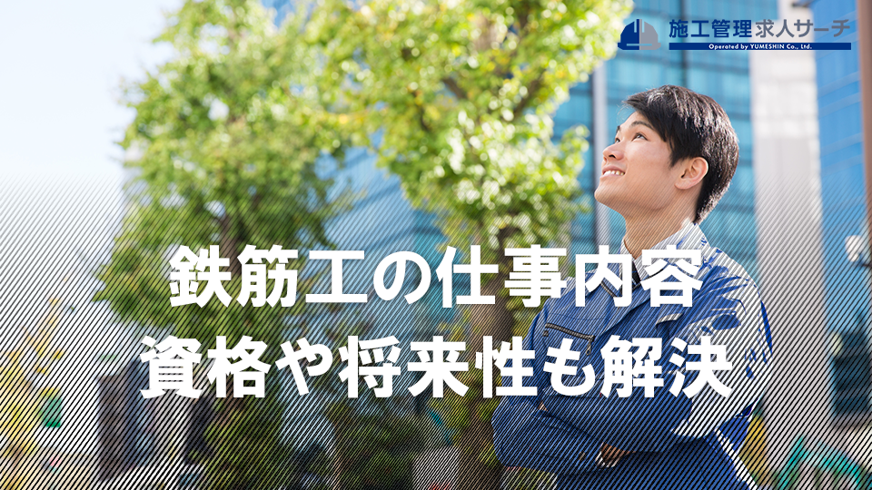 鉄筋工の仕事内容(施工図作成、加工、鉄筋取付、篏合、結束、自主検査)、鉄筋工に役立つおすすめの資格(一級鉄筋施工技能士、基幹技能士、二級建築施工管理技士)、鉄筋工に向いている人の特徴、鉄筋工の将来性などについて説明しました。