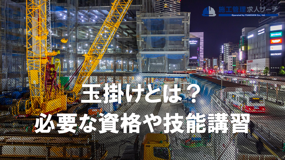 玉掛けとは、クレーンのフックに建材を掛けたり外したりする作業のことを指す言葉です。玉掛け作業は簡単そうなイメージを持たれがちですが、間違えた掛け方や操作をしてしまえば大きな事故を起こしかねません。