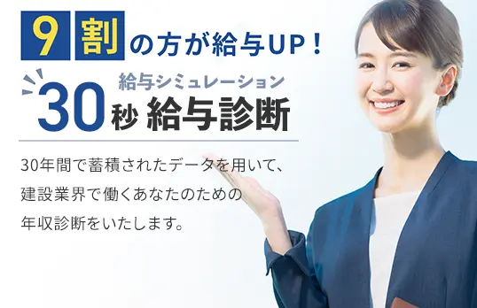 ここまで年収UP方法を解説してきましたが、年収を上げる第一歩は、今の自分の市場価値を正しく知ることです。施工管理特化のデータに基づいた年収診断で、今のあなたの『本当の価値』を確かめてみませんか?