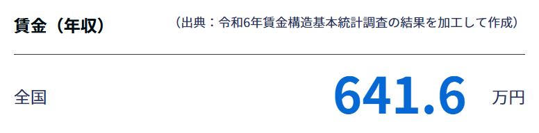 厚生労働省が運営する「職業情報提供サイト(jobtag)」の調査では、約641.6万円というデータ もあります。